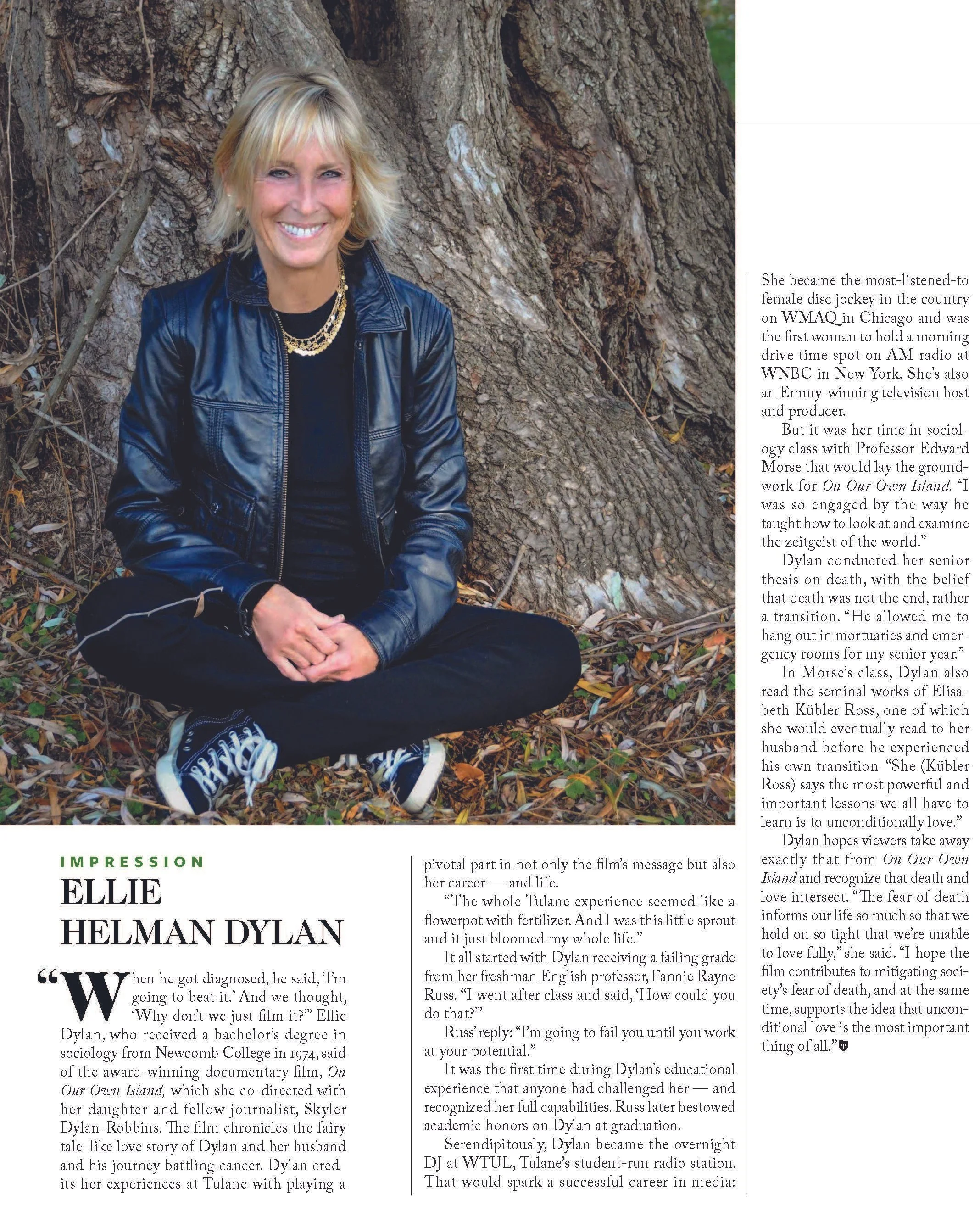 Most recently, Dylan’s feature documentary, On Our Own Island, which she co-produced with her journalist-daughter, is a true love story that is captivating audiences around the world. The film has garnered numerous awards and critical acclaim for its warmth and bravery, and continues to inspire people about the power of true love that endures, even beyond death.